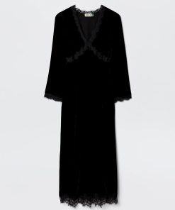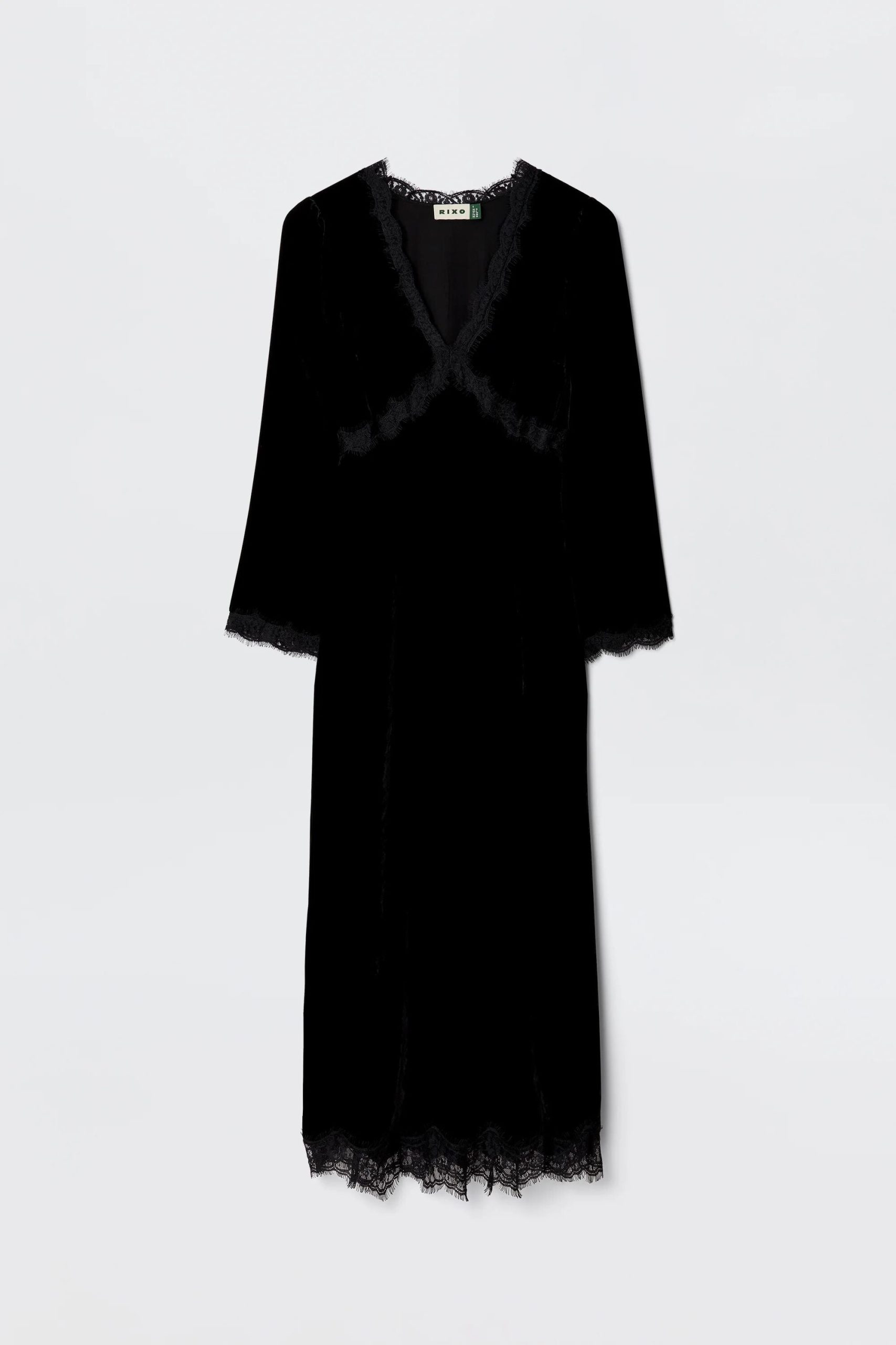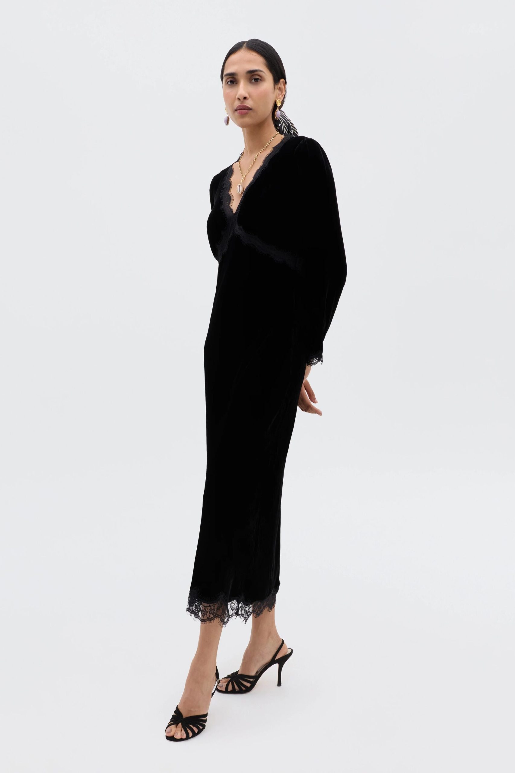Product detailsDetailsAlessi is where boho-glamour meets dark romanticism. Crafted from luxurious velvet and with delicate lace detailing, it’s a beautiful combination of easy-to-wear, sophistication and demure sensuality. Pair it with a pair of statement earrings for a night at the theatre or a romantic dinner.Fit