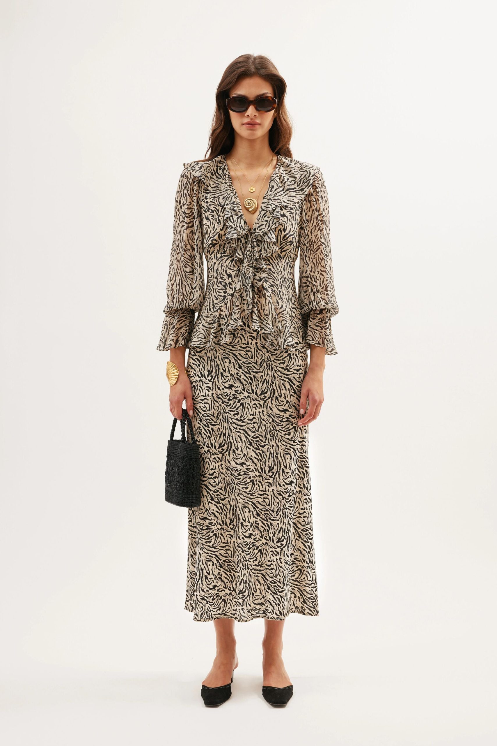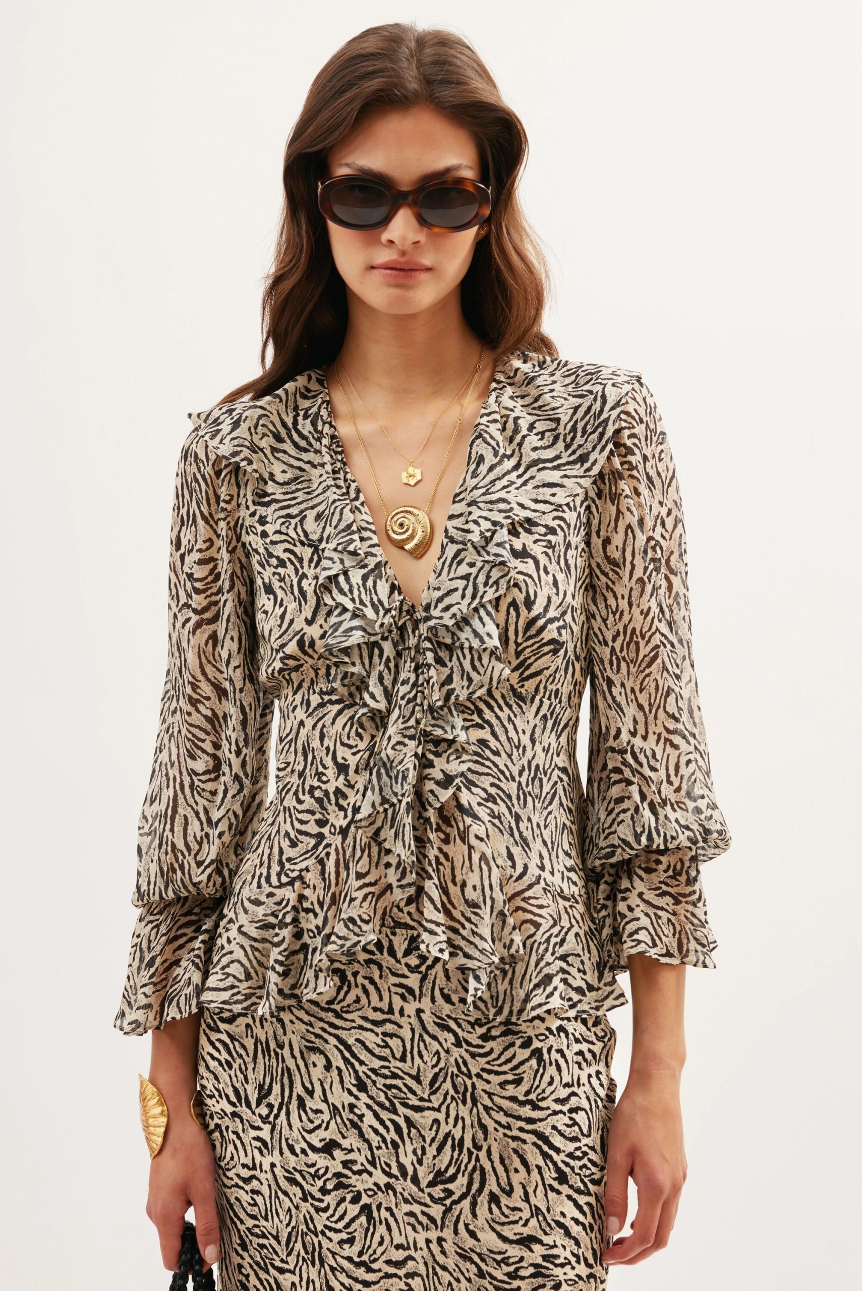 Rixo Women’s Ami Silk Blouse | Sun Leo Tan