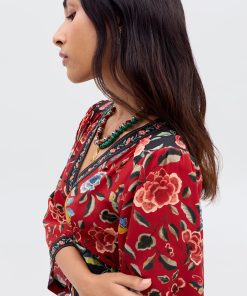 Product detailsDetailsRefined maximalism, expressive and timeless in stylerediscover Dahlia, now in our Butterfly Mix print. Patterned with florals resembling traditional chinoiserie and in warm hues, it’s an easy transitional piece. Style with your favourite RIXO statement earrings for an eclectic finishing touch.Fit