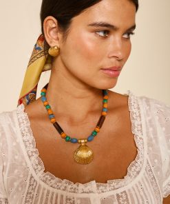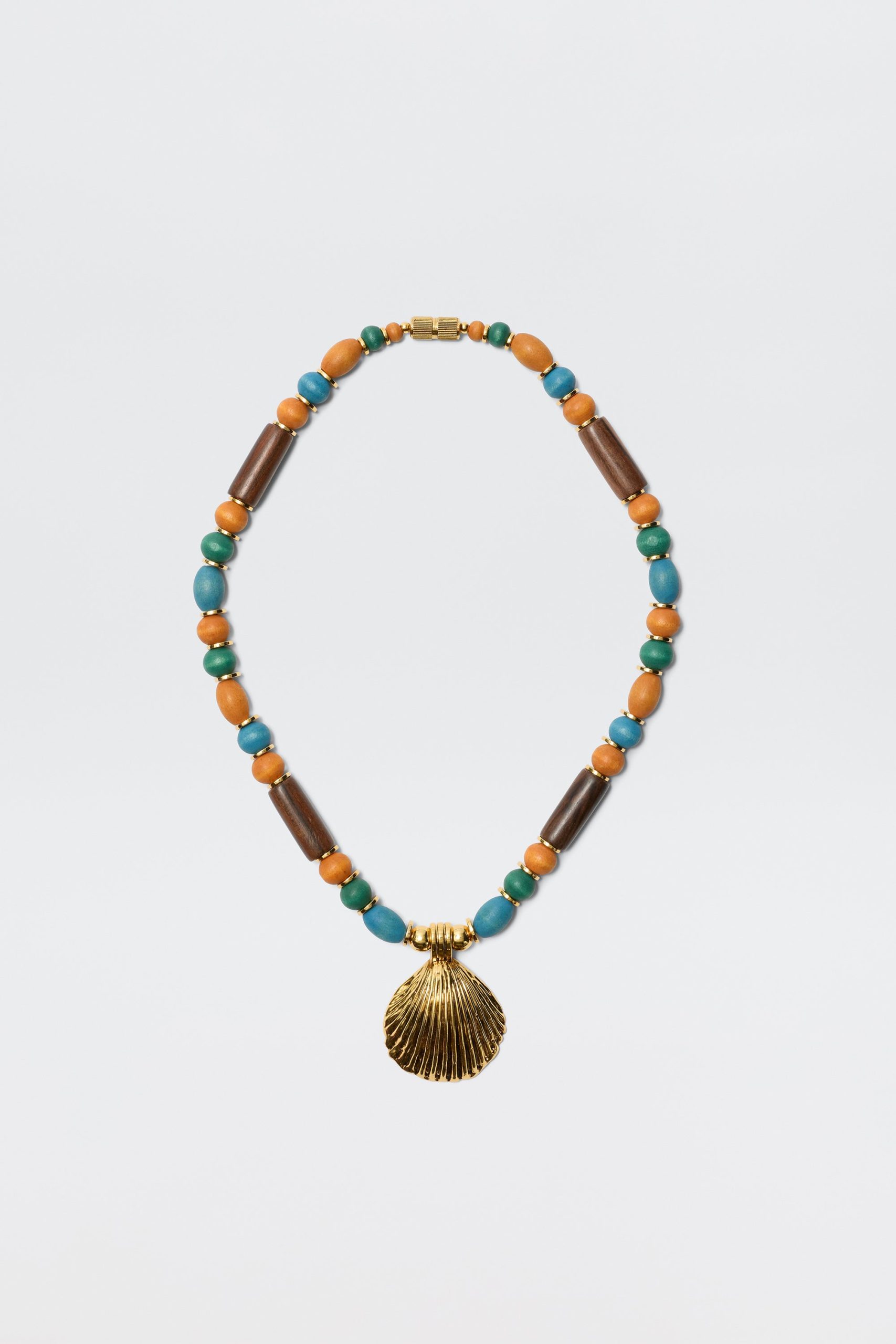 Product detailsDetailsLightweight wooden beads make up this Darielle necklace, with a gold-plated shell charm that matches the Rosaria earrings. The screw-on fastening keeps it secure.Fit