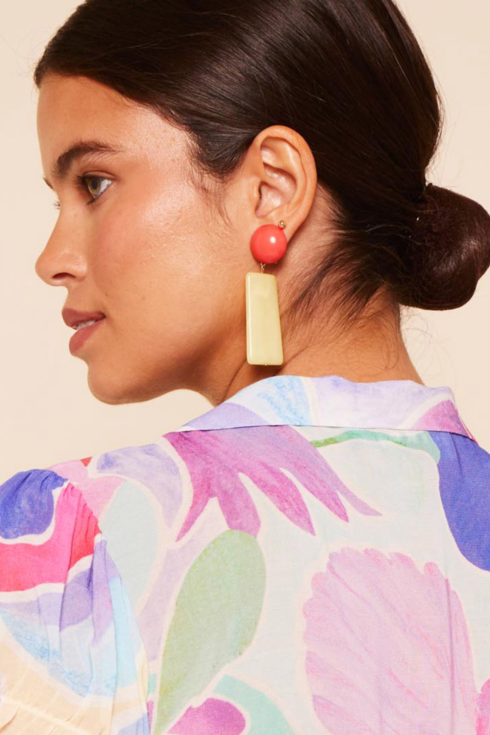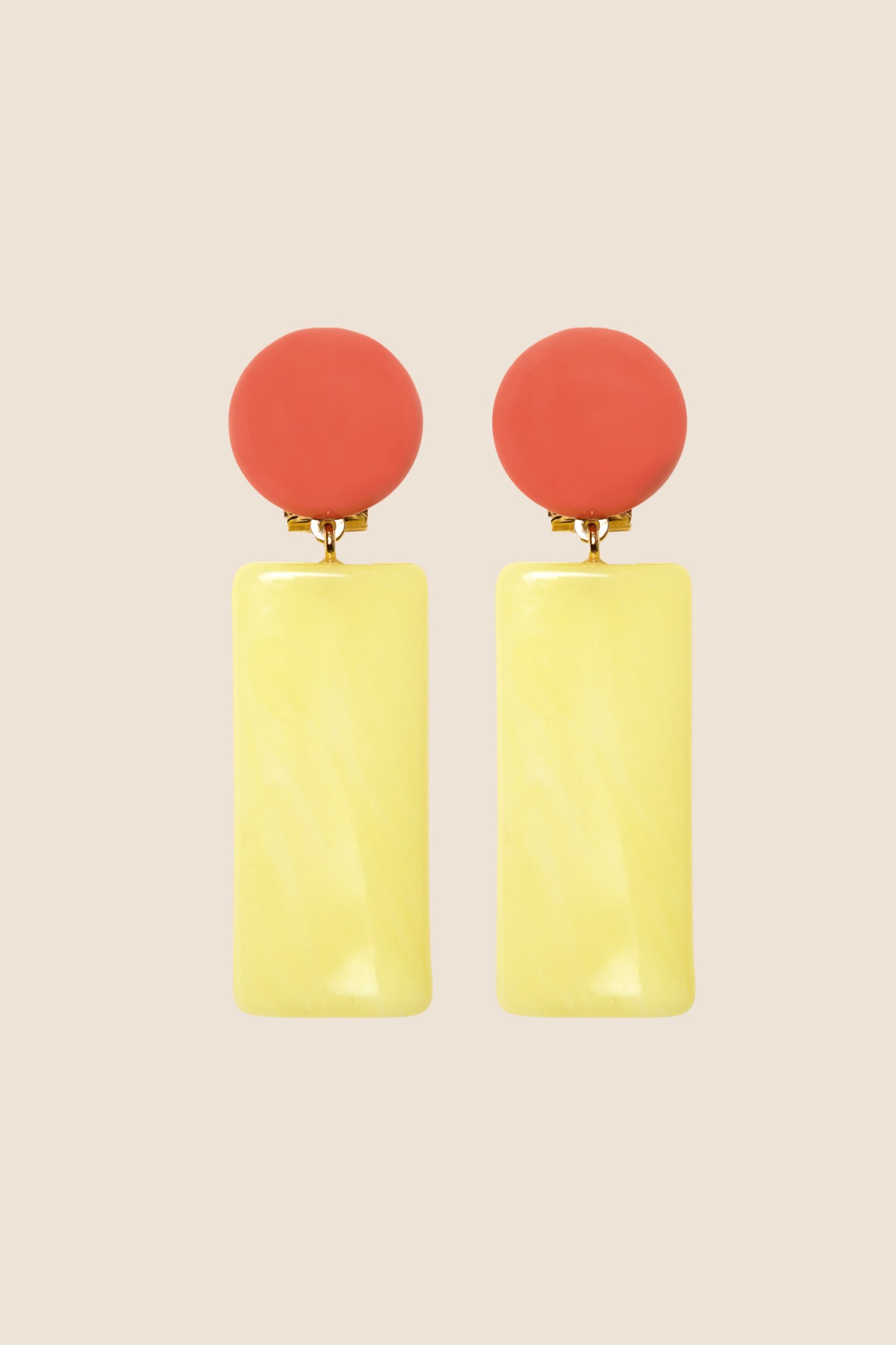 Product detailsDetailsThese geometric Elka earrings have a retro feel, inspired by a pair our co-founder found in an Italian flea market. Designed with 18-karat gold-plated clip fastenings, they’re made from smooth resin in colours inspired by the Sundance collection.Fit