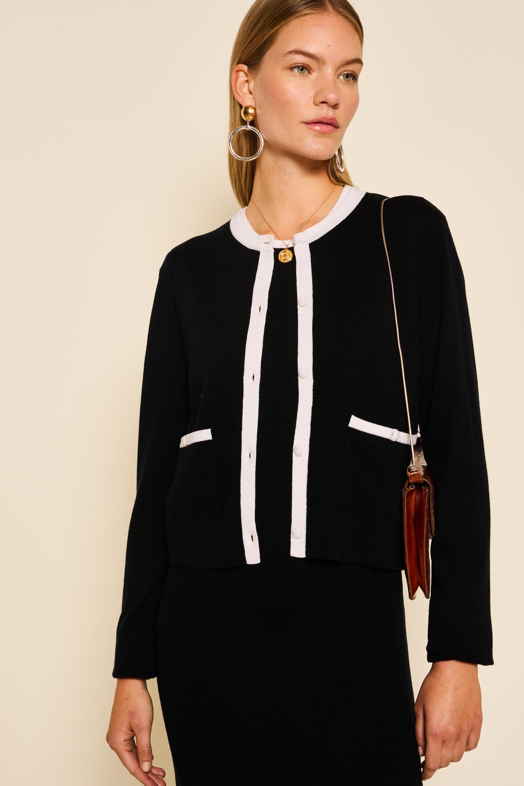 Product detailsDetailsBring some sixties style to your wardrobe with this Emer cardigan. Made from pure merino wool, it’s designed in a boxy fit that means you can wear it as a top, or with the coordinating Marlowe dress.Fit