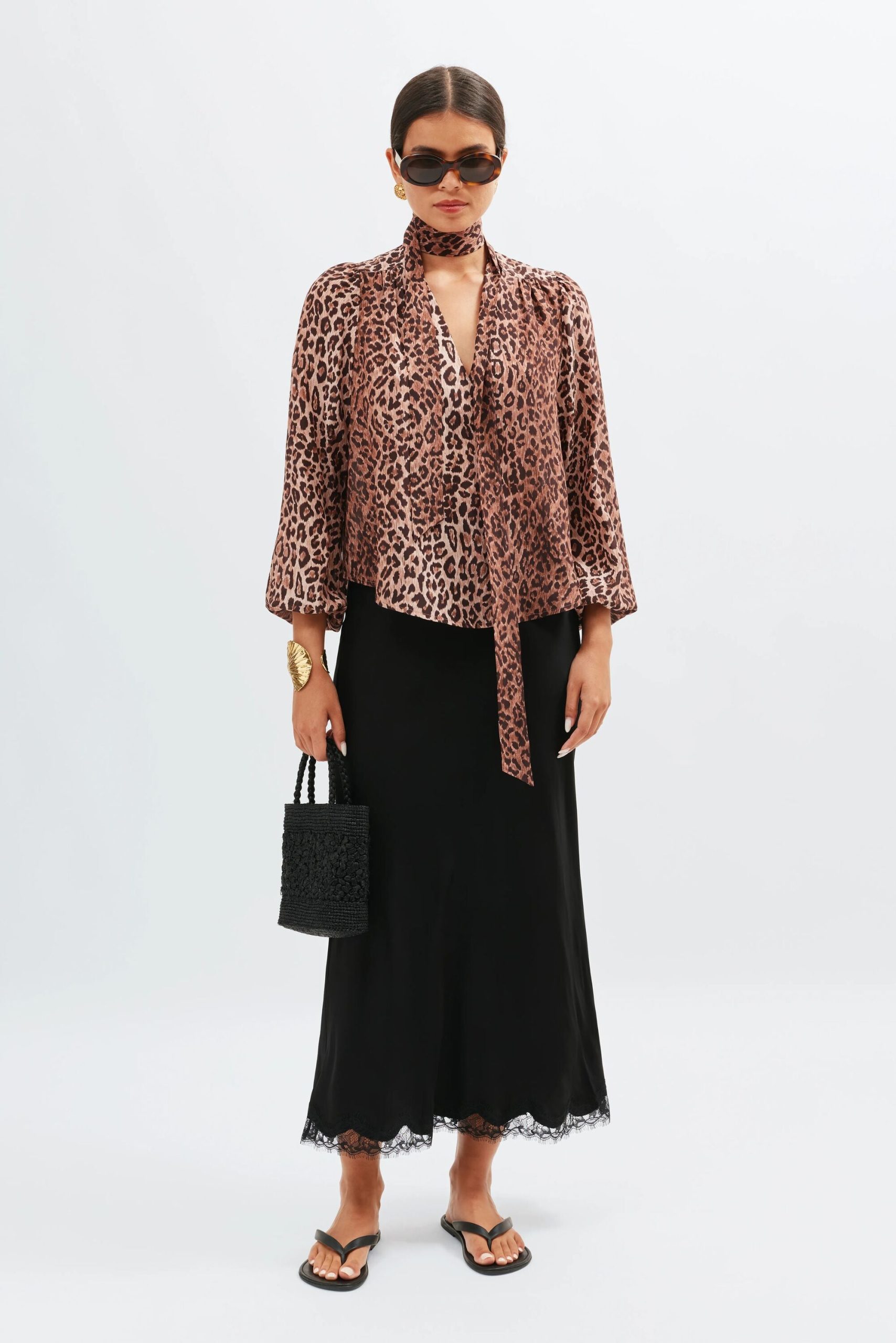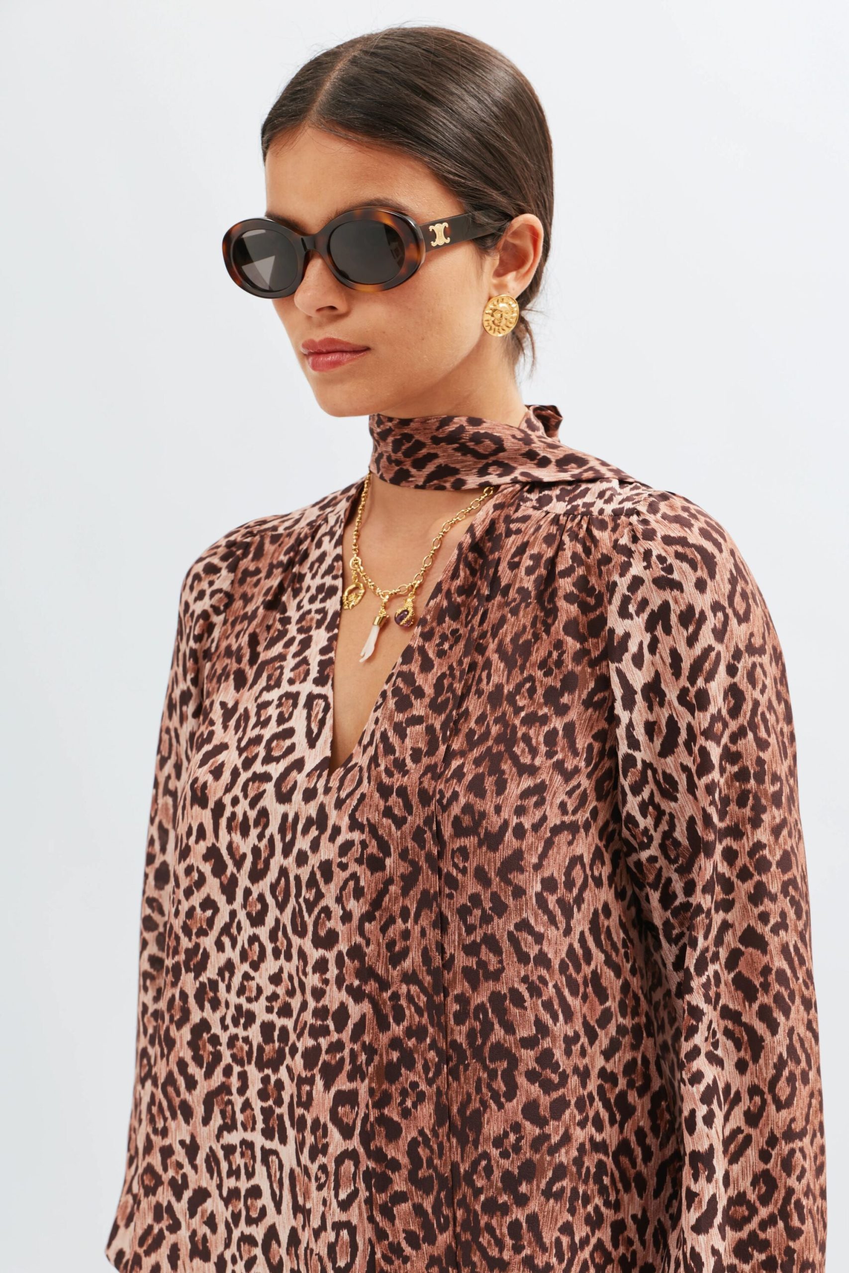Product detailsDetailsVintage-inspired both in print and silhouette, our signature Moss blouse will brighten up so many outfits. It’s made from silk crepe de chine and printed with brown leopard spots which we consider a neutral when it comes to styling.Fit