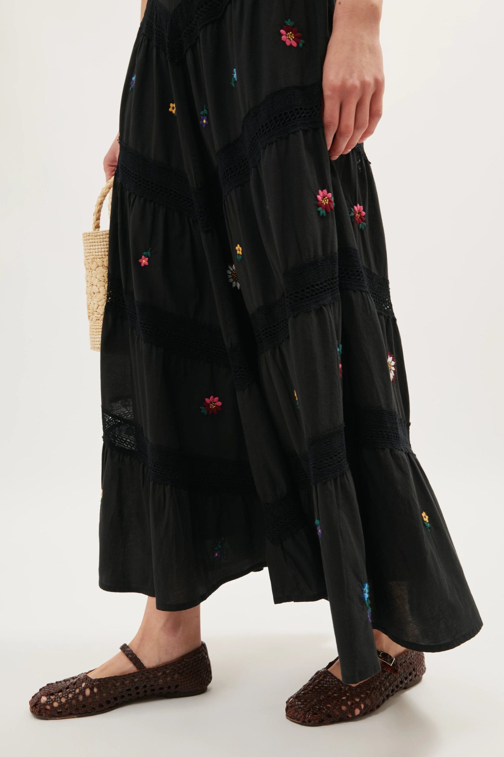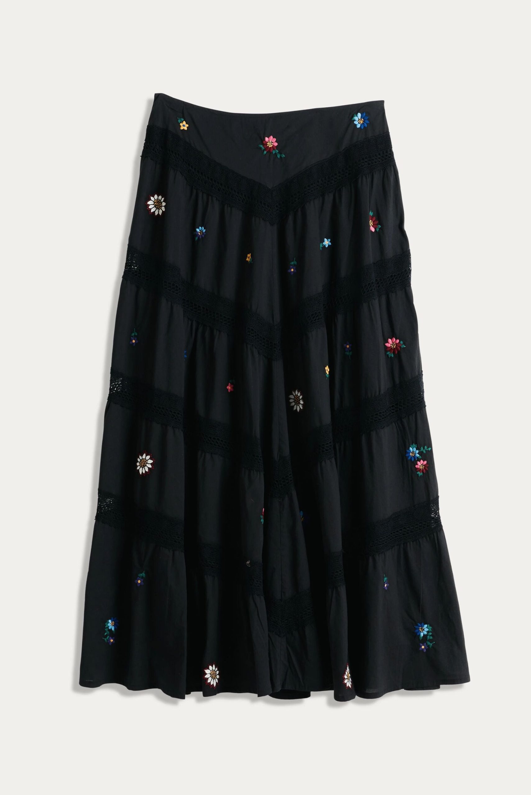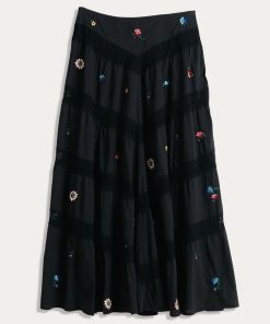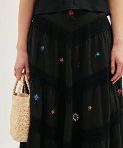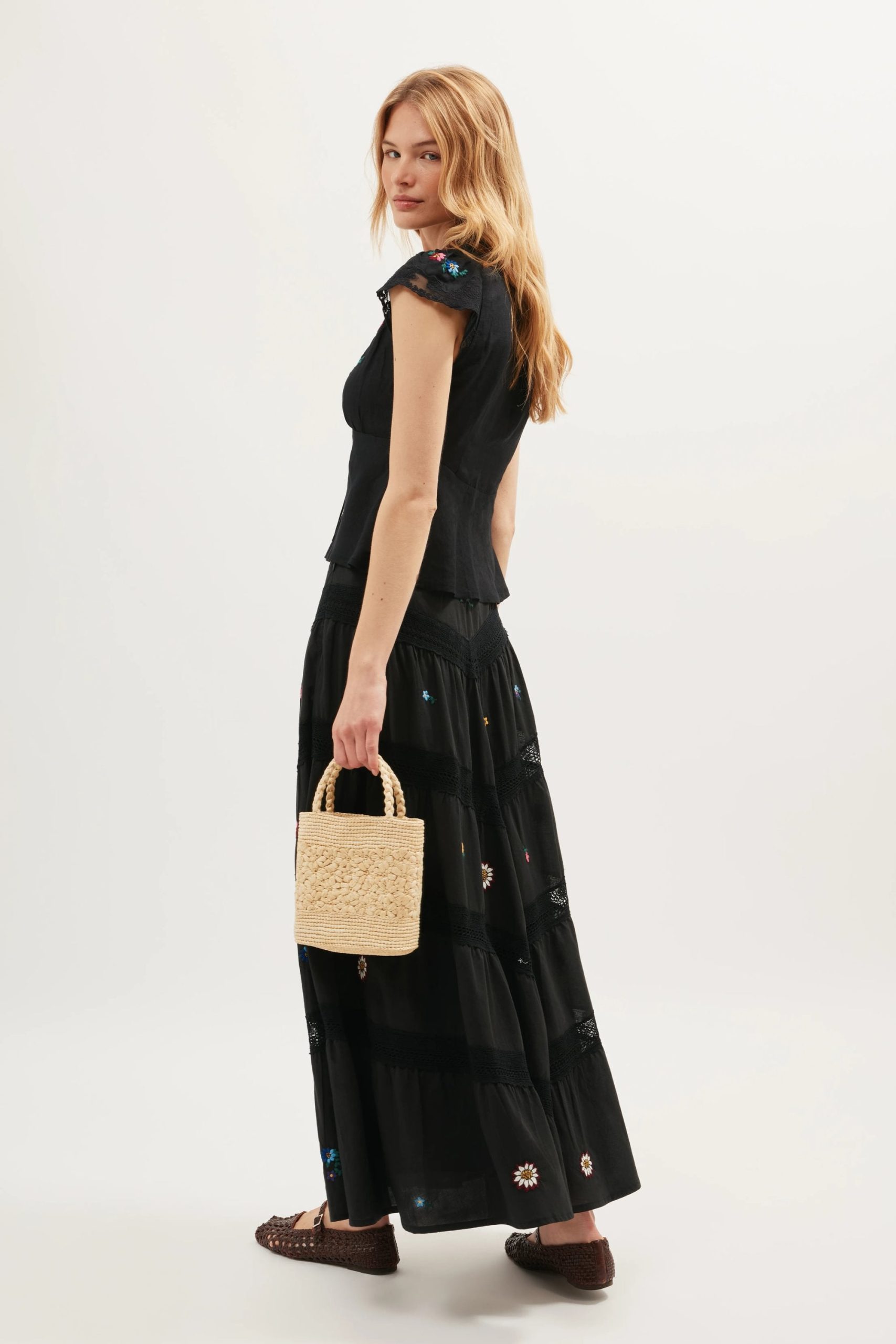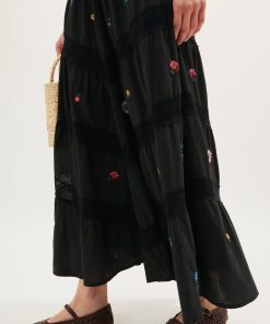 Rixo Women’s Sigrid Midi Skirt | Daisy Sun Embroidery Black