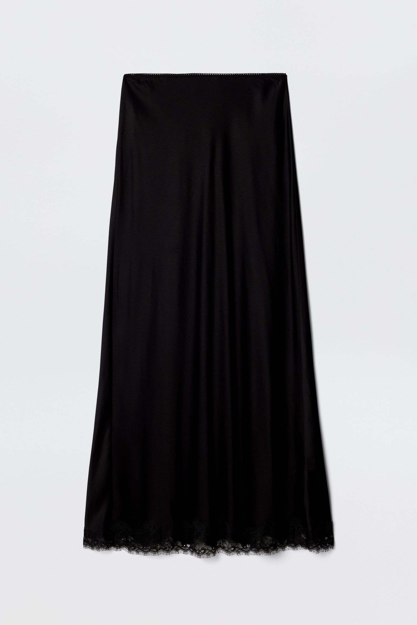 Product detailsDetailsStassie is an update on our Crystal skirt, made from a lighter, more matte satin that drapes beautifully. Our Co-founder, Orlagh, loves the wavy lace – we sourced it in Paris.Fit