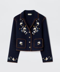 Product detailsDetailsOur Sunday jacket is a RIXO favourite – this one is embroidered with tulips and made from warm wool-blend. The navy base means it goes with everything – a true wardrobe hero.Fit
