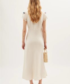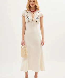 Product detailsDetailsAmari is based on our bestselling Clarice dress, but we’ve added embroidery around the neckline. It’s cut in our signature bias shape, with underbust seams and a tie front so you can adjust the V-neck.Fit
