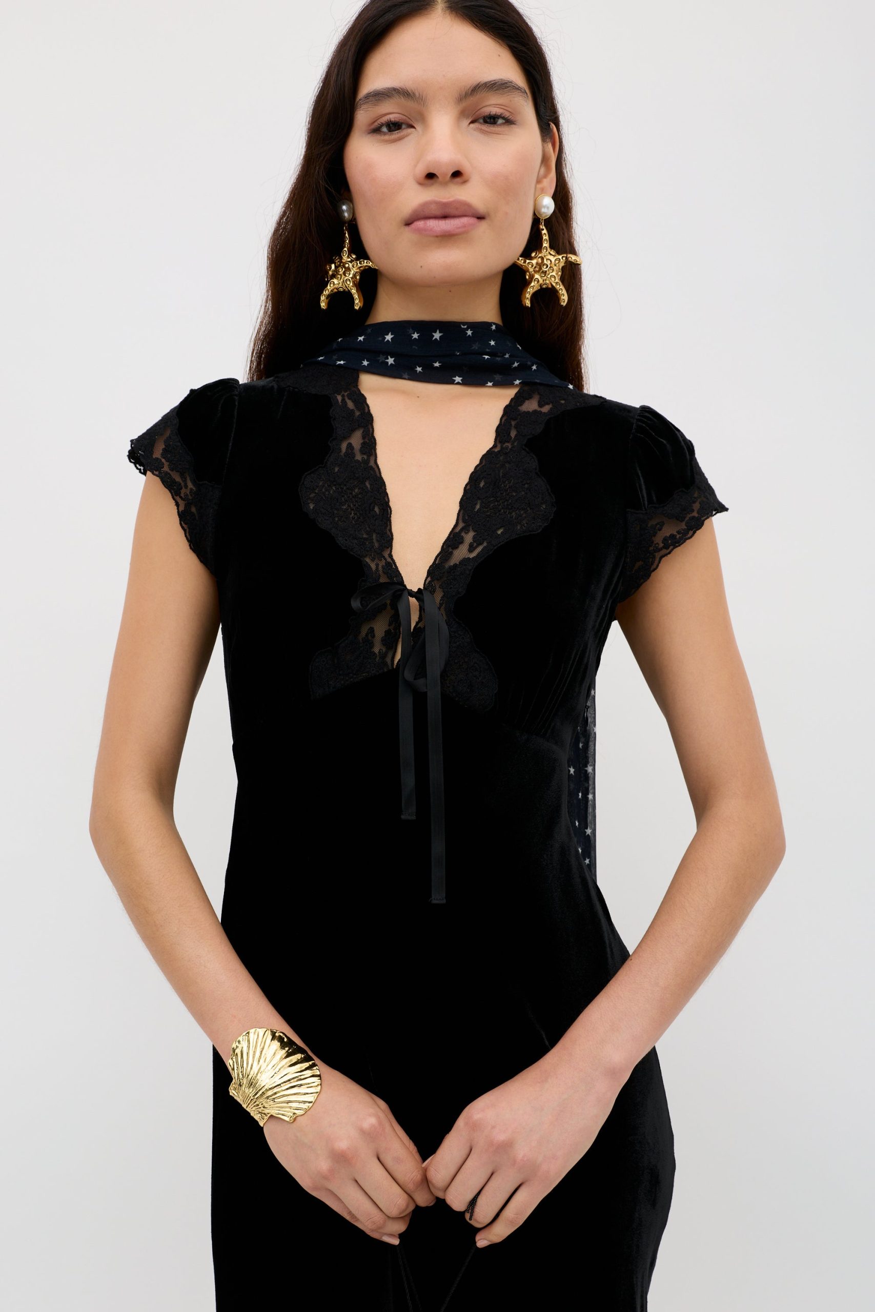 Product detailsDetailsAvailable in regular and petite. Amari is based on our bestselling Clarice dress, but the black velvet gives an elevated feel, perfect for occasions or evenings. It’s cut in our signature bias shape, with underbust seams and a tie front so you can adjust the V-neck.Fit