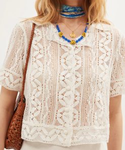 Rixo Women’s Weddings Diona Crochet Shirt | Ivory