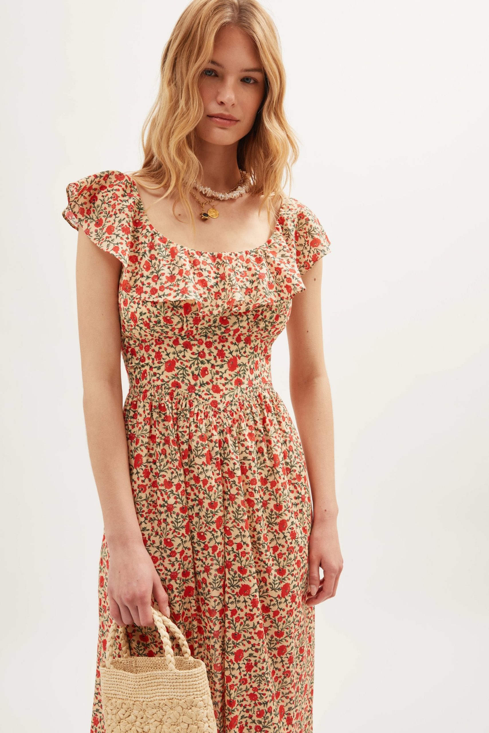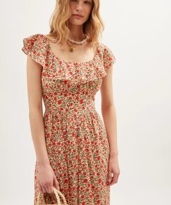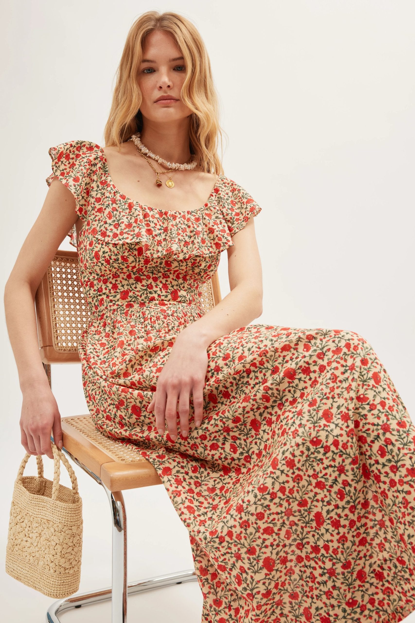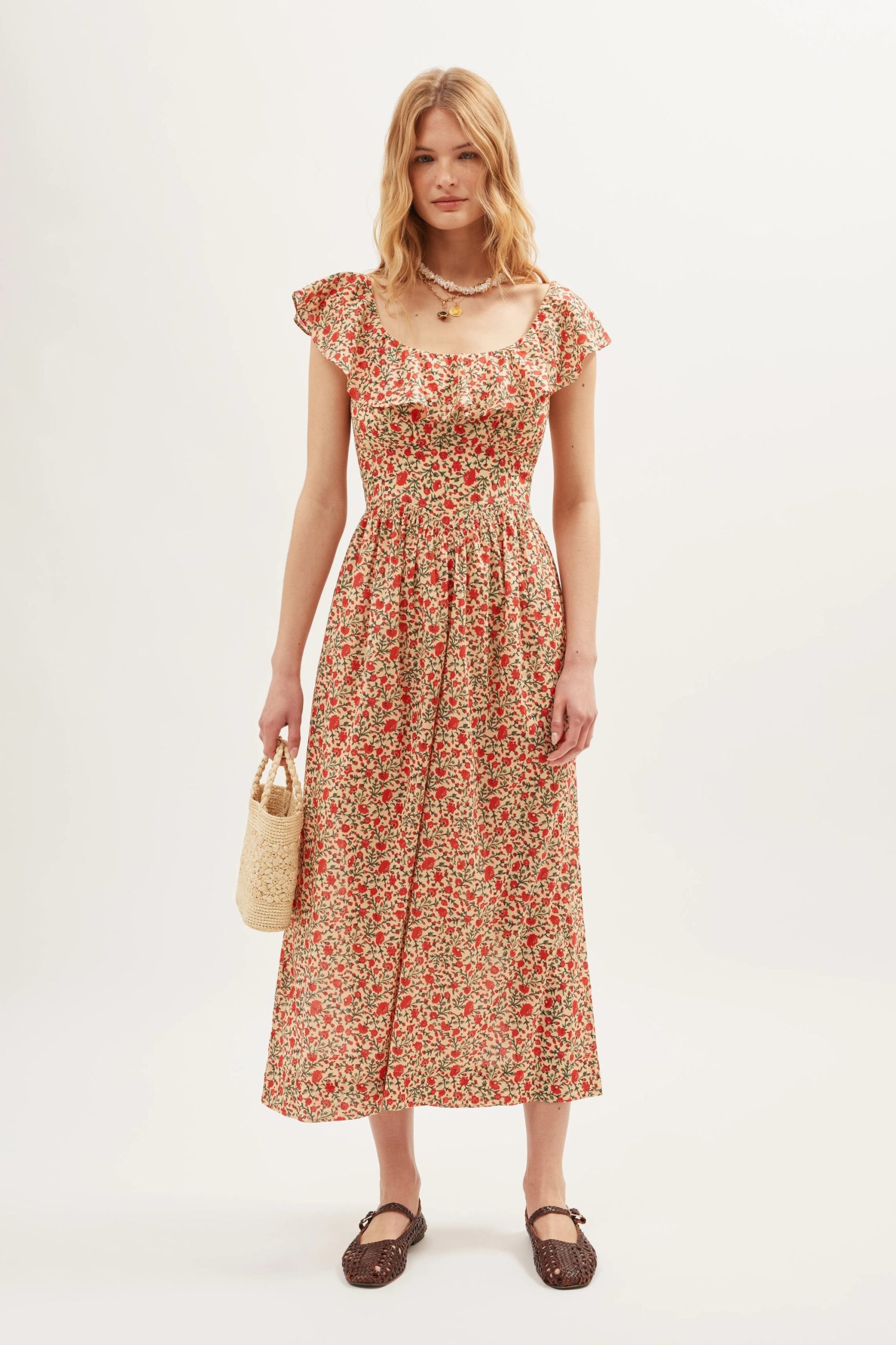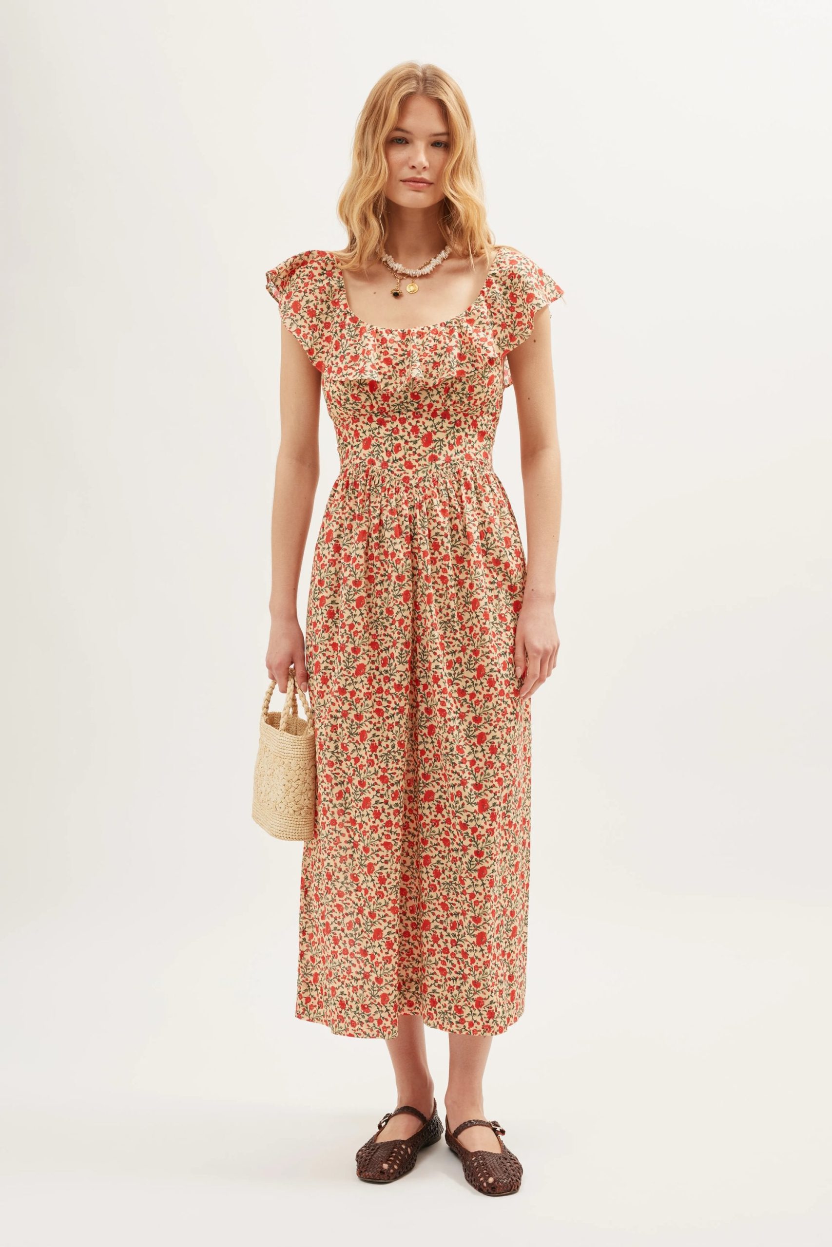 Rixo Women’s Weddings Ebony Midi Dress | Ditsy Trail Cream