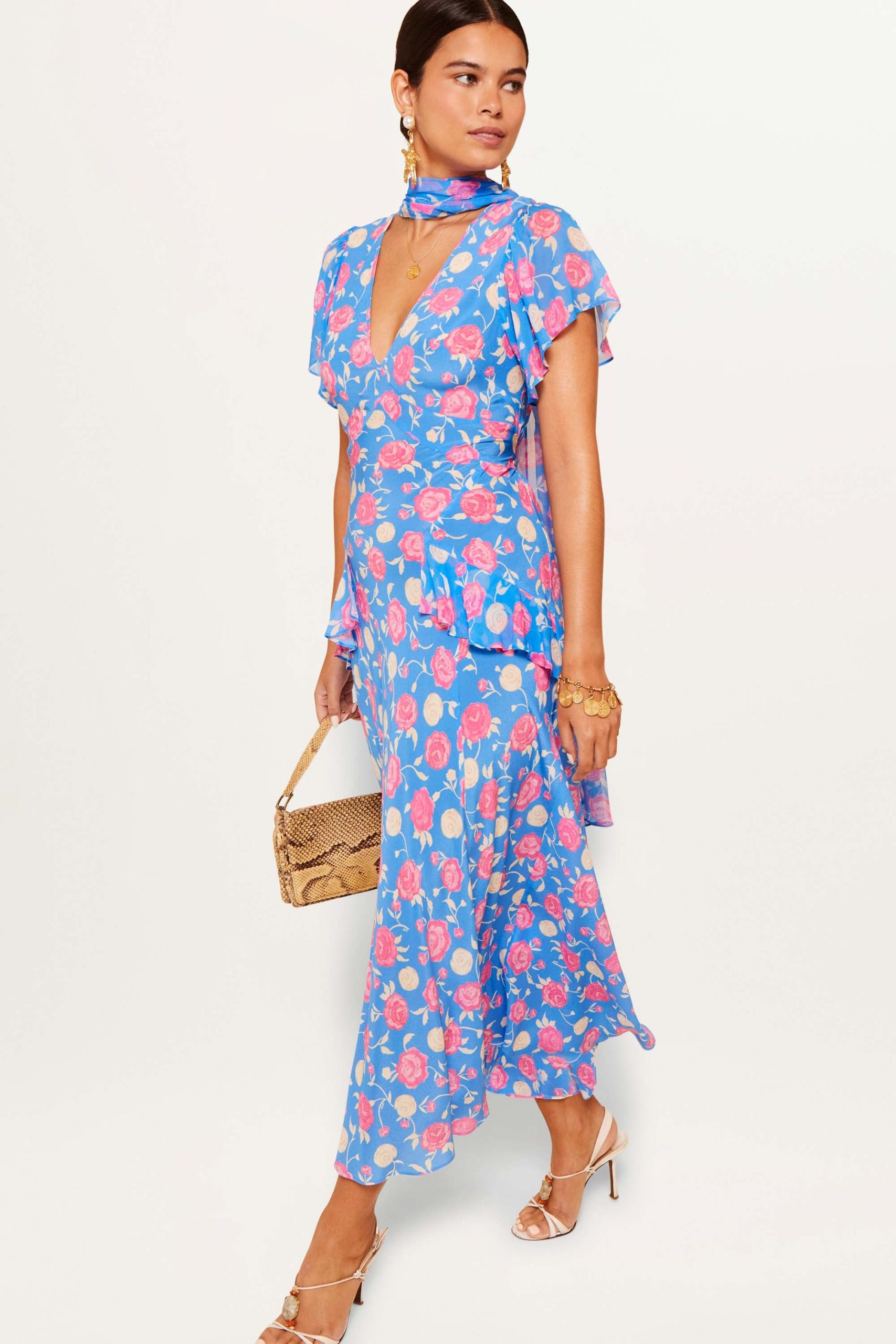Product detailsDetailsAvailable in regular and petite. Our silk crepe de chine Evie dress is such a popular style thanks to the fluttery georgette ruffles, bra-friendly neckline and waist-cinching ties. Please note, scarf sold separately.Fit
