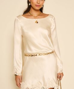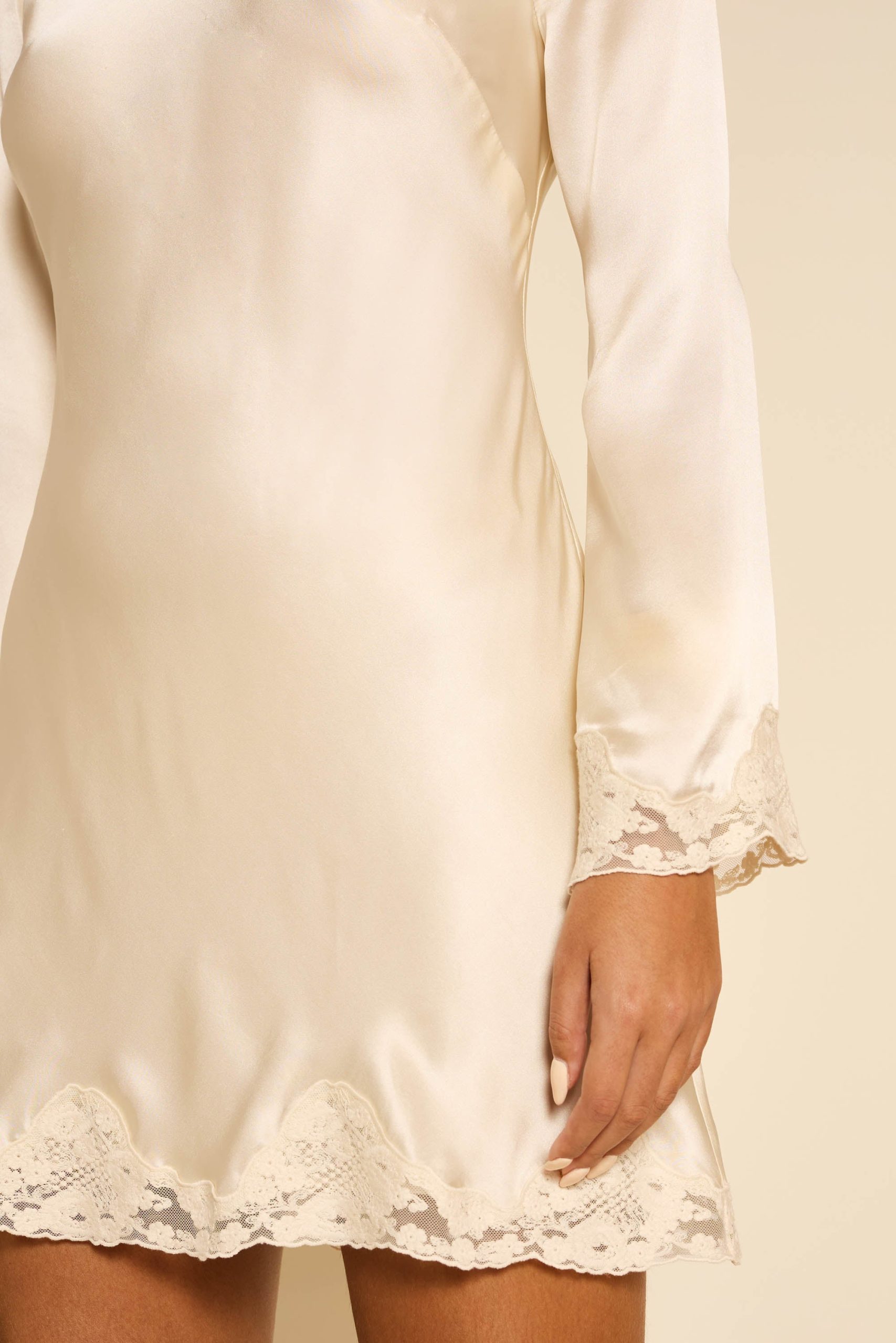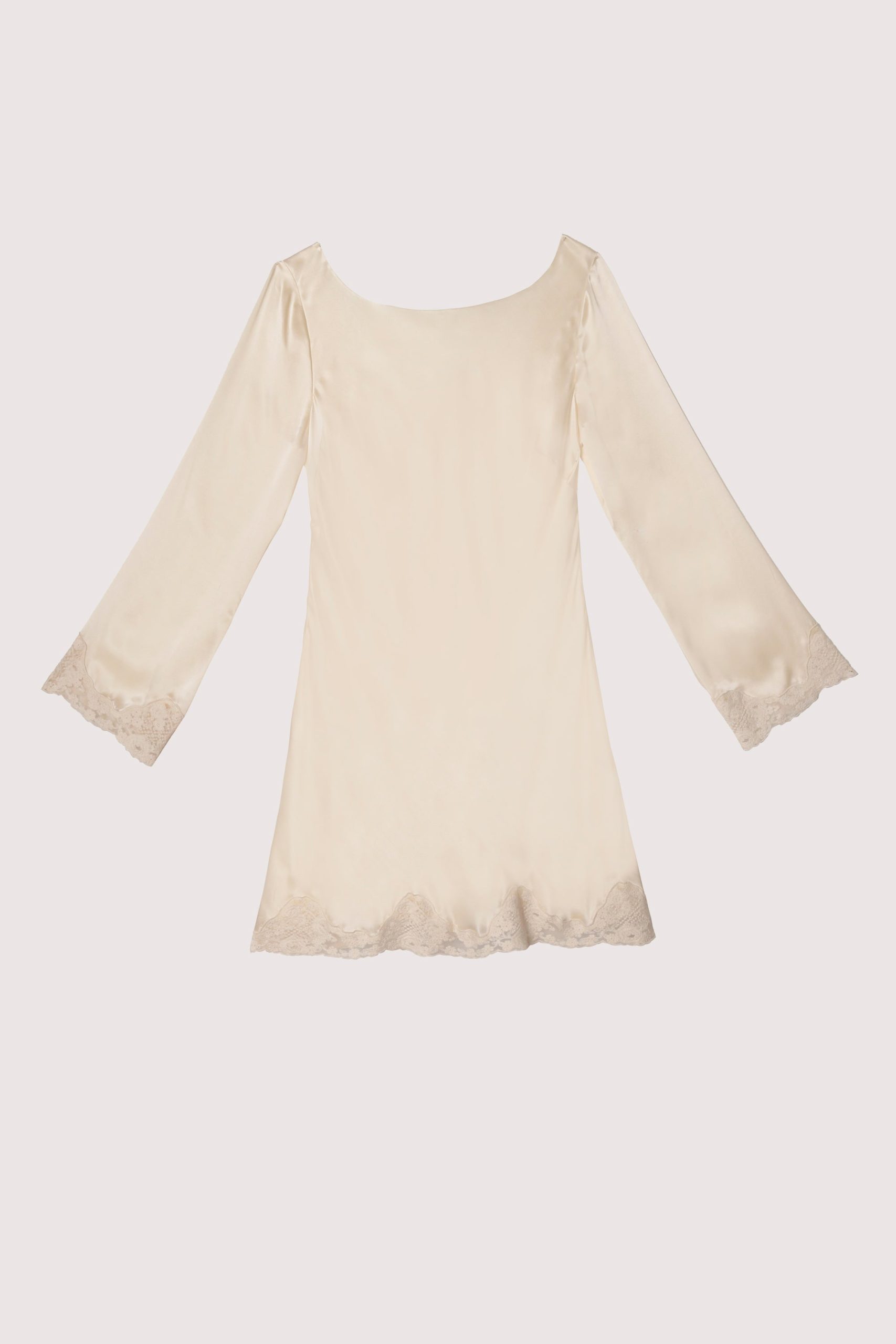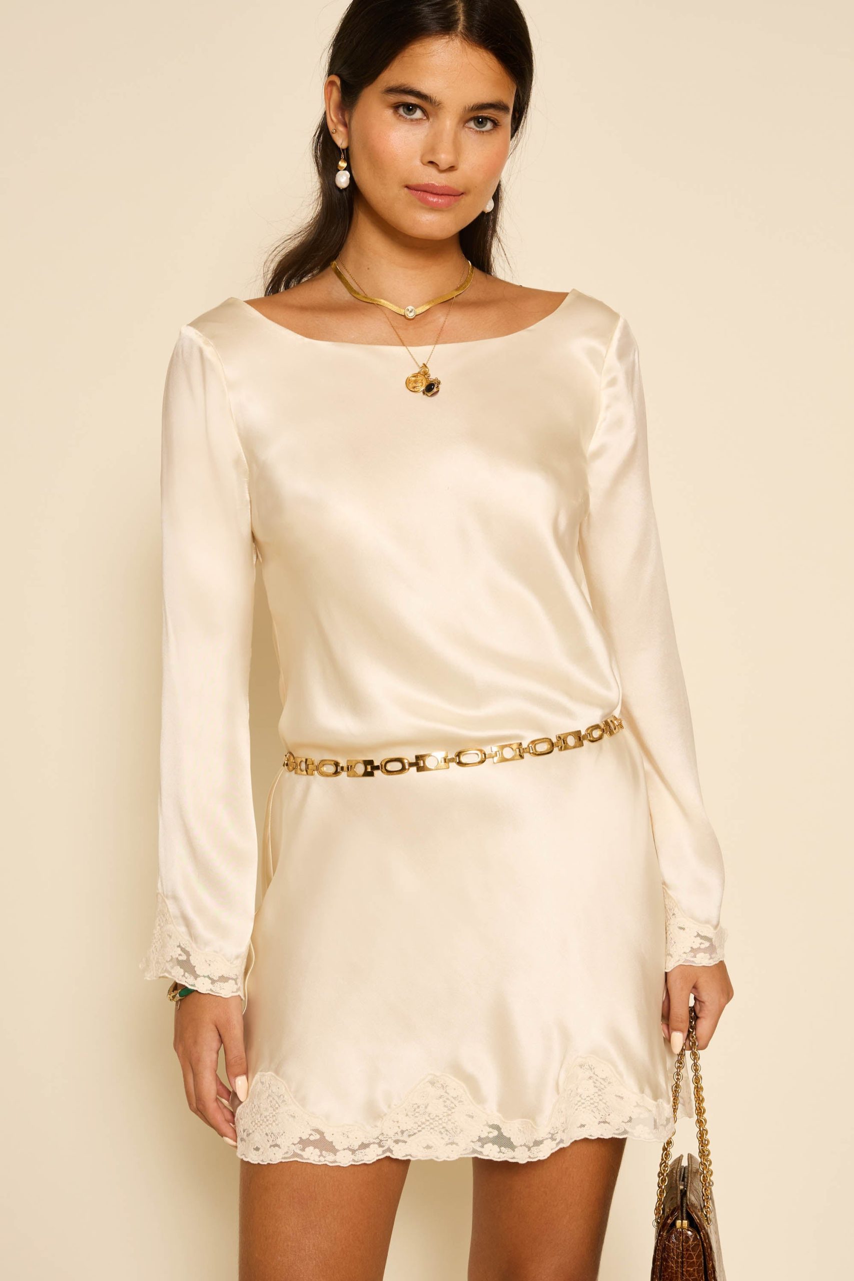 Product detailsDetailsIn-store exclusive style. Check availability and book a bridal appointment at either our King’s Road or Marylebone store.The perfect second look for weddings or honeymoon outfit, there are no limits to how you can wear this Ilse dress. Made from champagne silk-satin, it’s trimmed with dainty lace for a vintage feel.Fit
