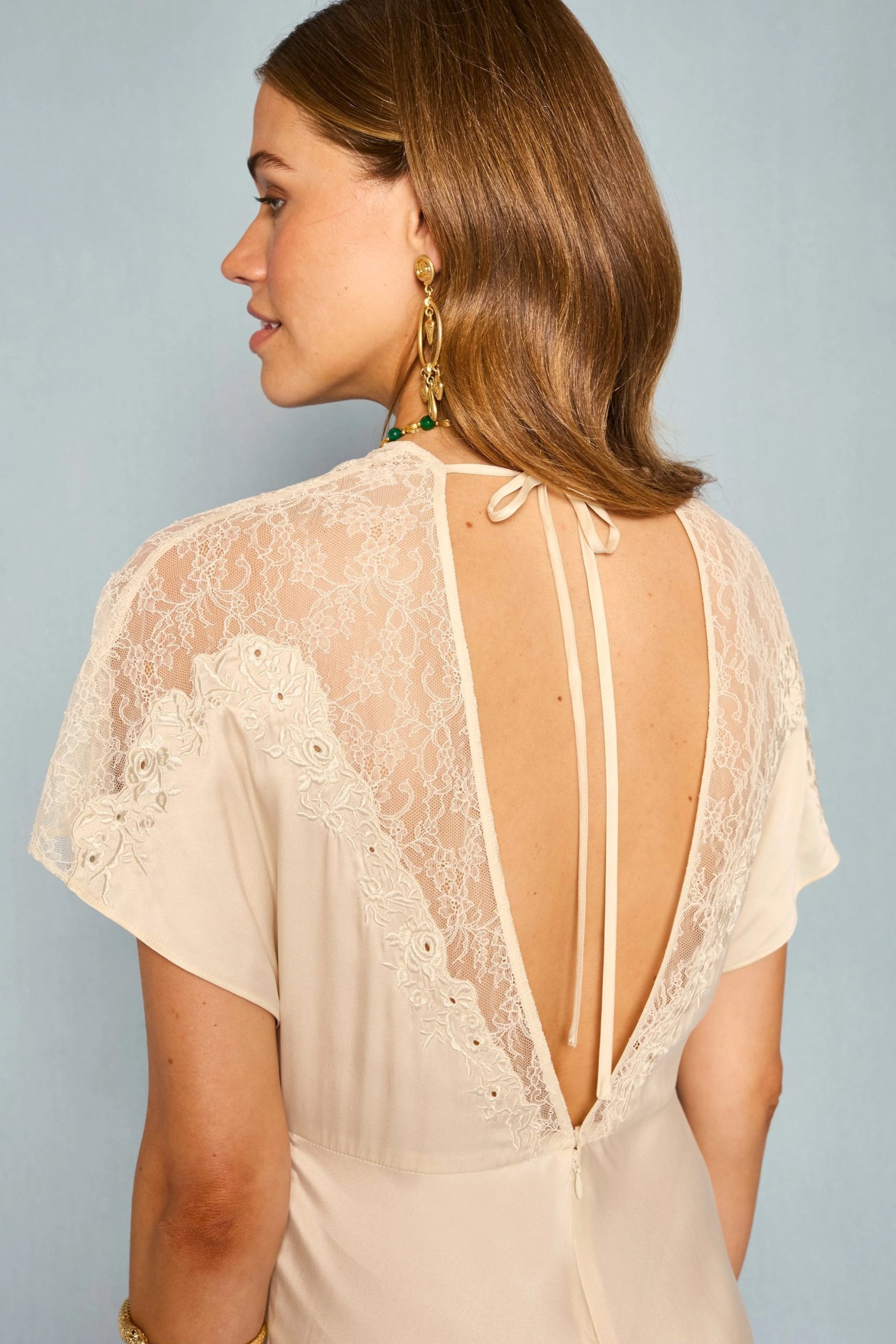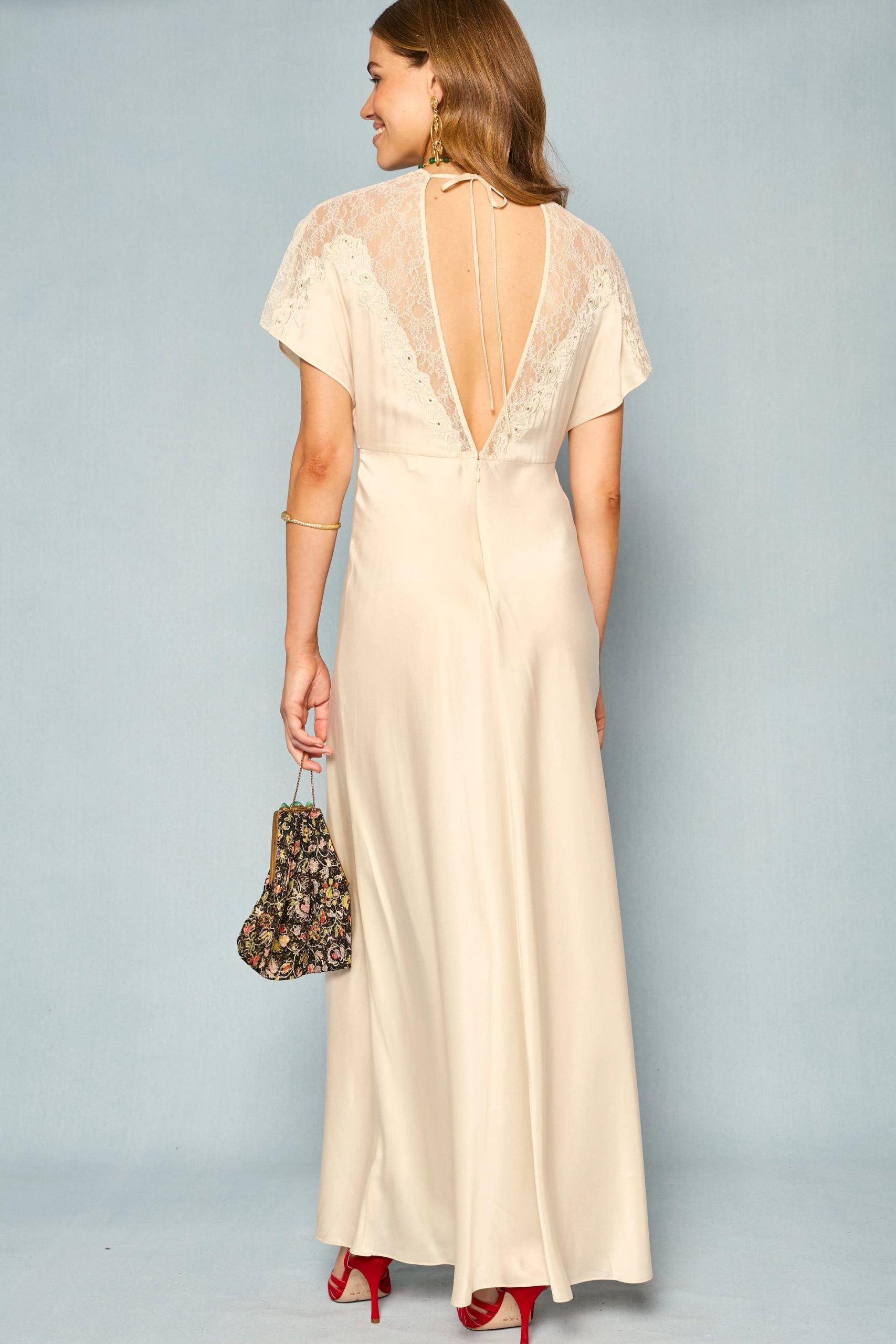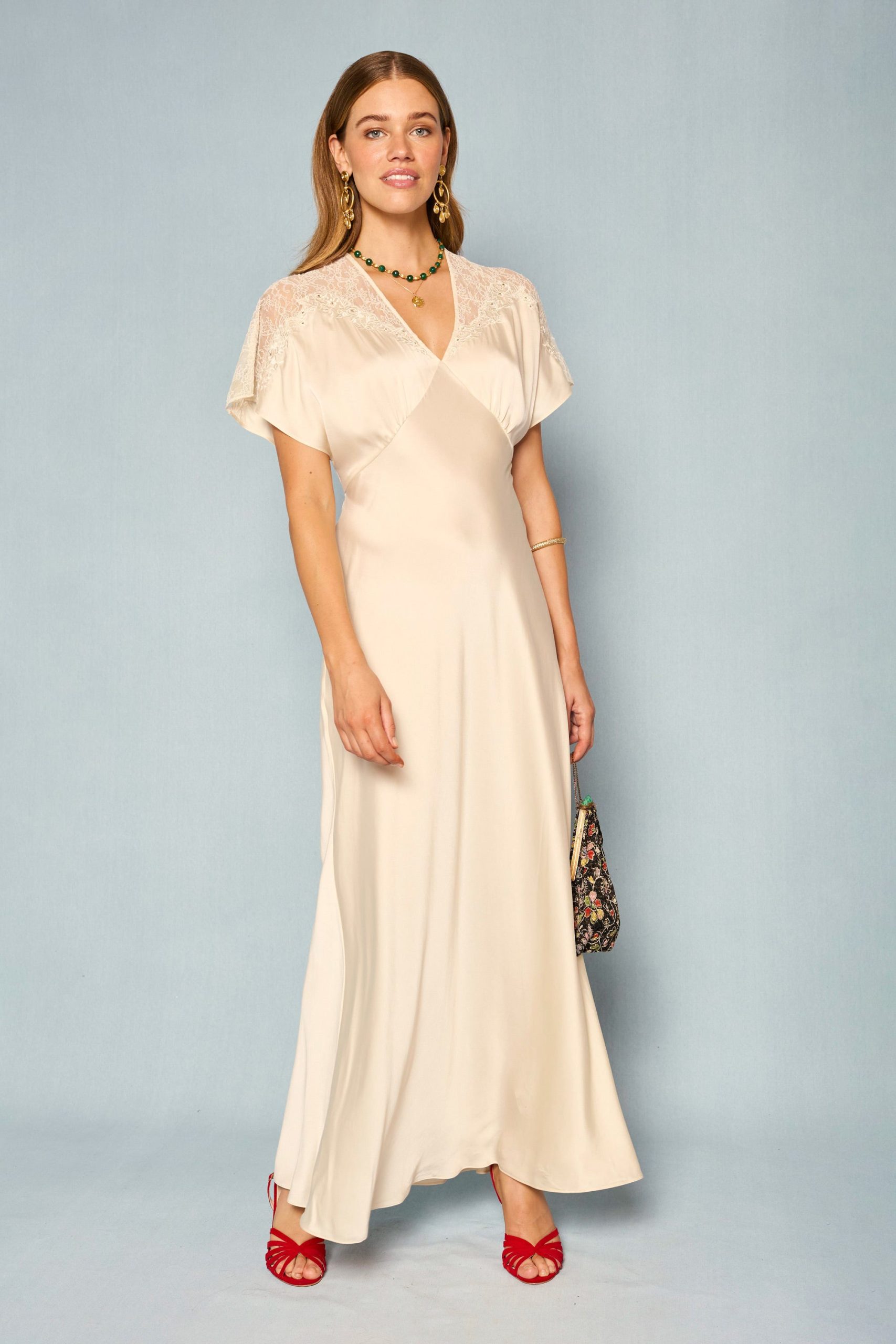 Rixo Women’s Weddings Marcie Silk Maxi Dress | Rose Embroidery Champagne
