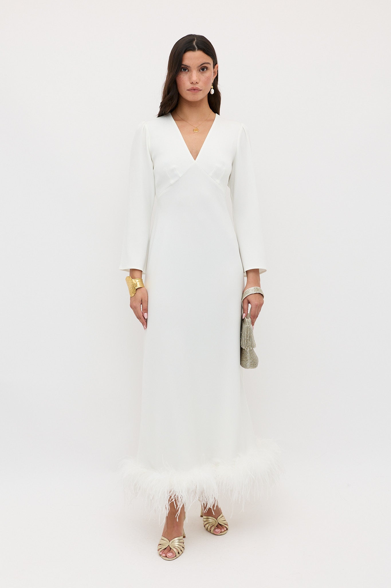 Rixo Women’s Weddings Mya Feathered Maxi Dress | Ivory Feathers