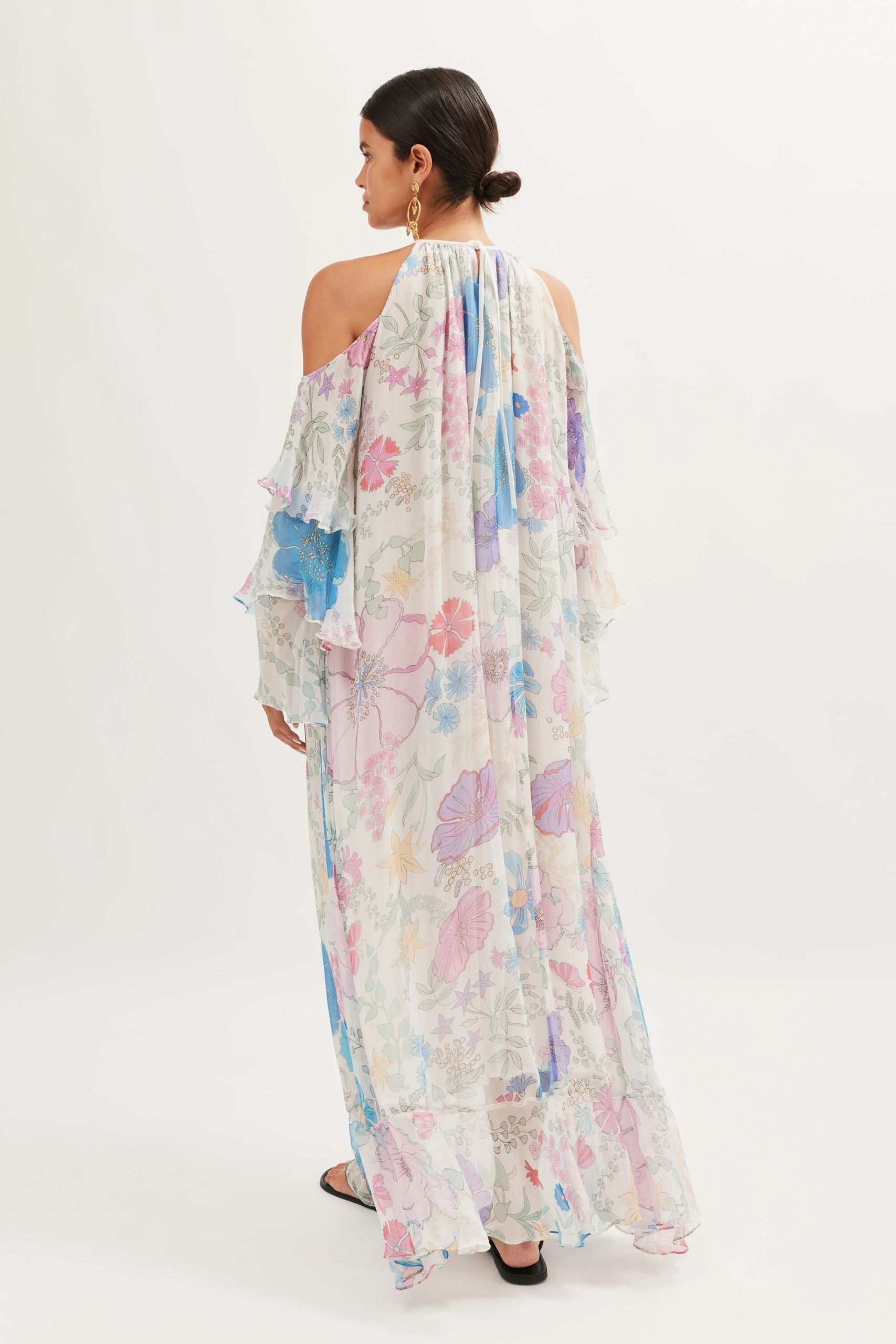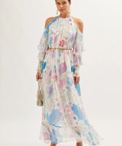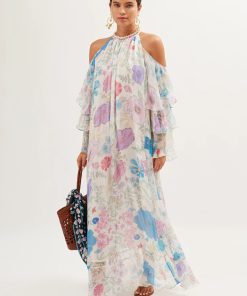 Product detailsDetailsMeet Niara, a striking gown for every occasion. Crafted from lightweight crinkled chiffon, this romantic silhouette features a halter neckline, cascading ruffled sleeves and offers fluid movement. For an effortless finishing touch, style yours with our Nolana gold earrings.Fit