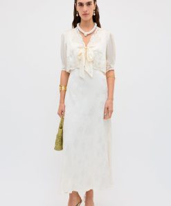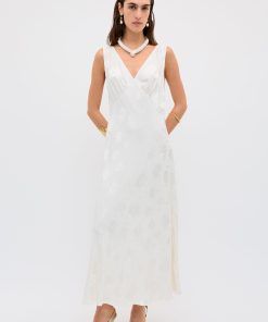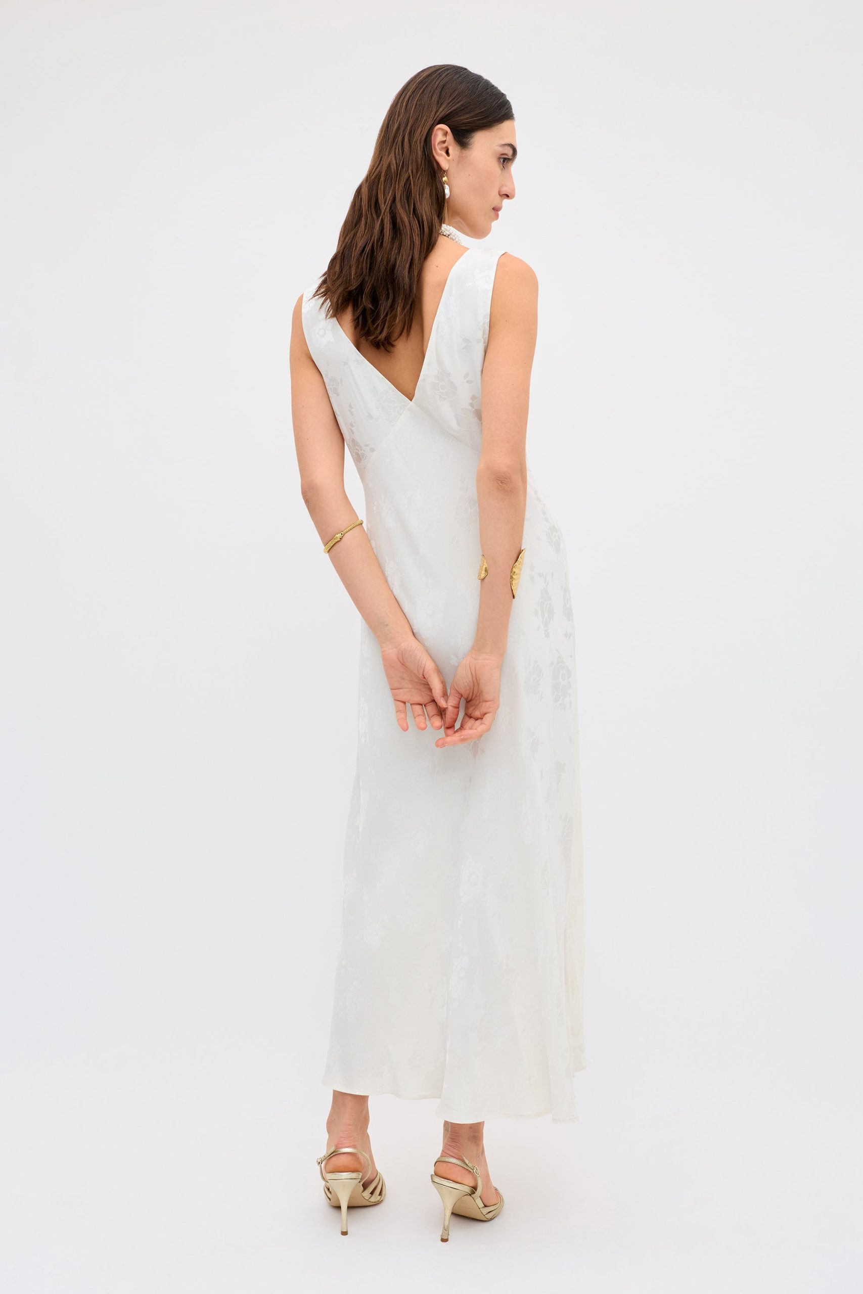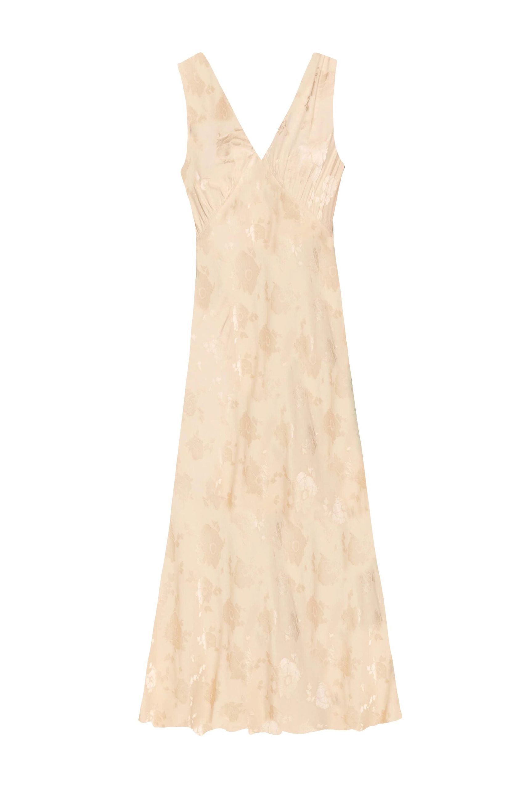 Product detailsDetailsOur Sandrine slip dress is perfect for so many occasions. A RIXO signature, it’s cut on the bias for a body-skimming fit, with angled underbust seams and wide straps to conceal a bra. This one is detailed with jacquard daisies.Fit