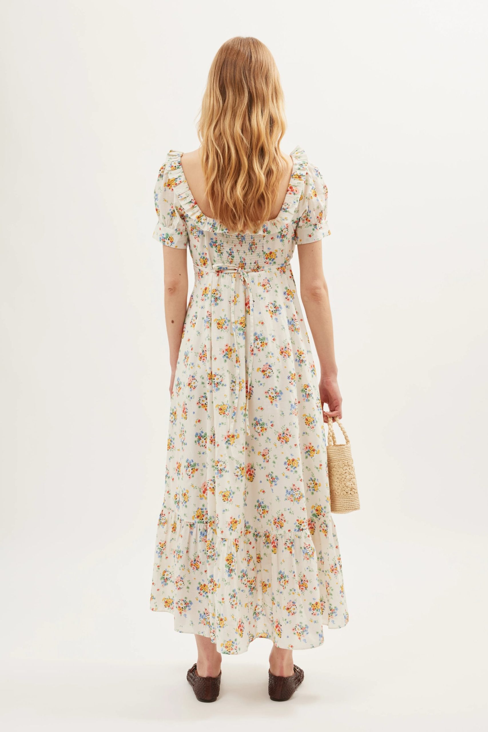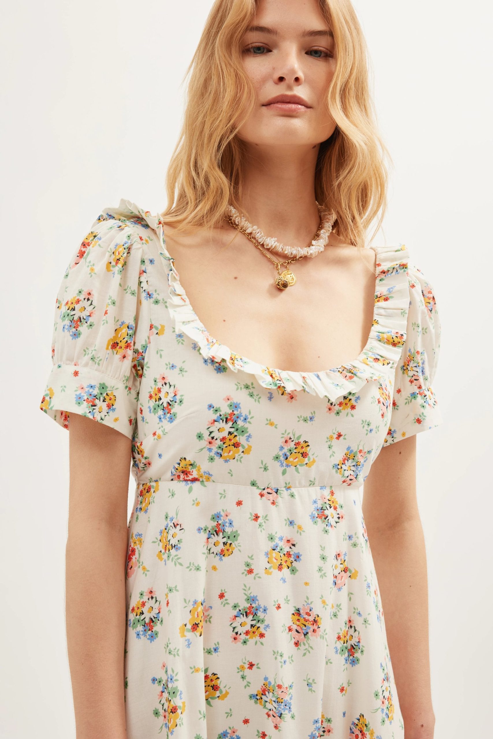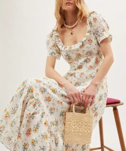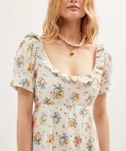 Product detailsDetailsSorana is the perfect vintage prairie dress, with ruffled accents, shirring and ties that draw in your waist. We worked with vintage samples to get the shape and fit just right.Fit
