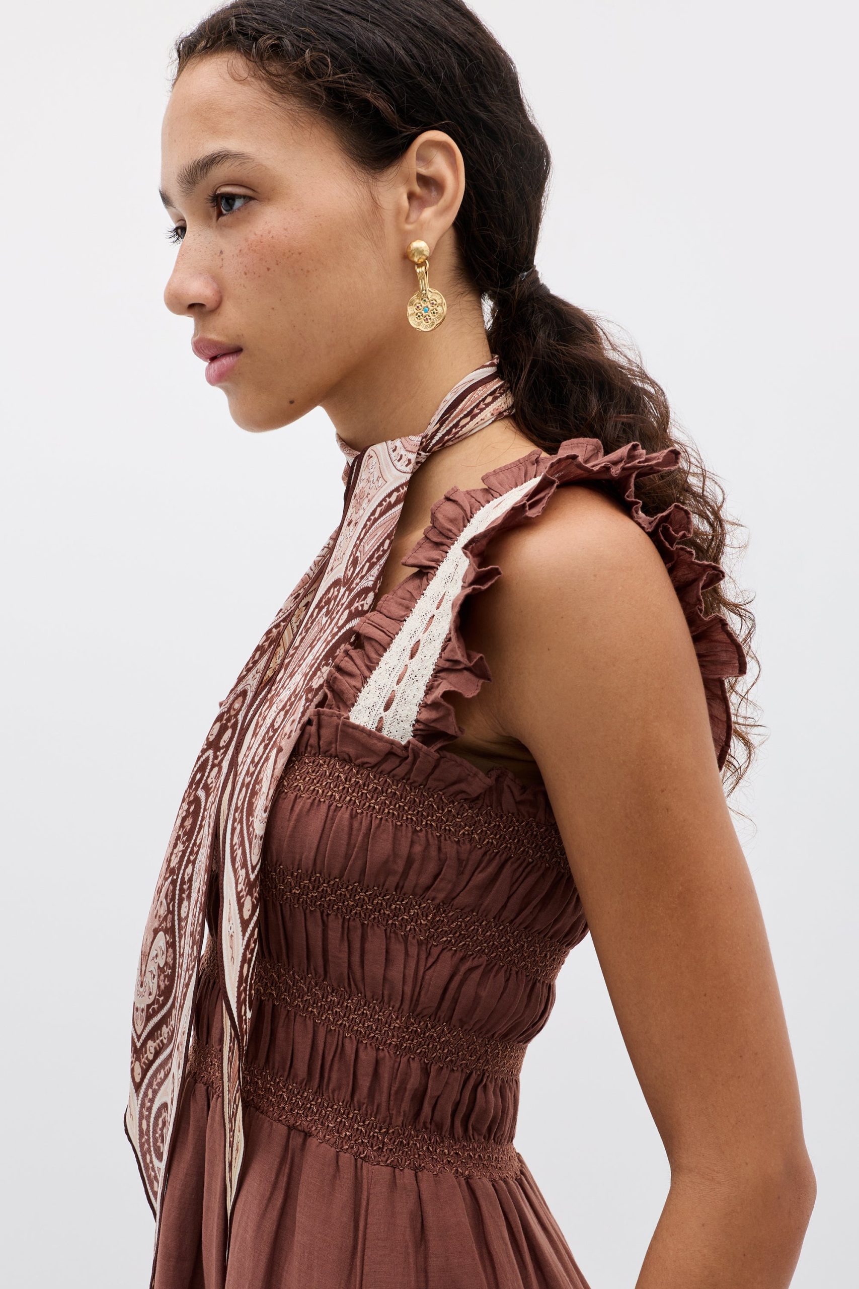 Rixo Women’s Yelina Scarf | Paisley Flora Brown