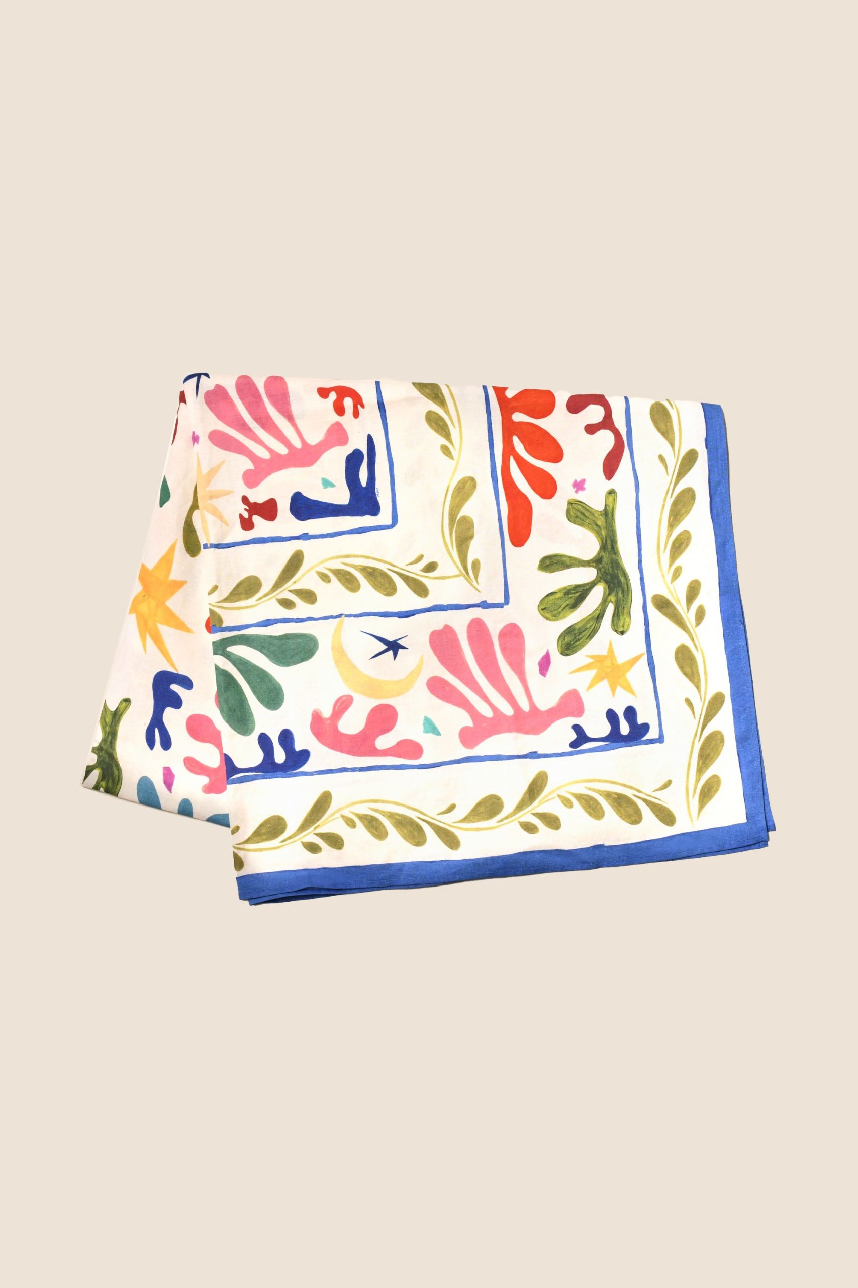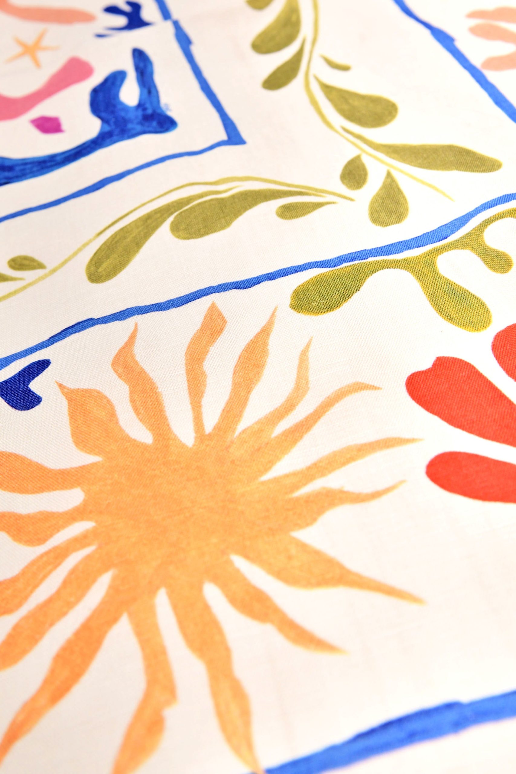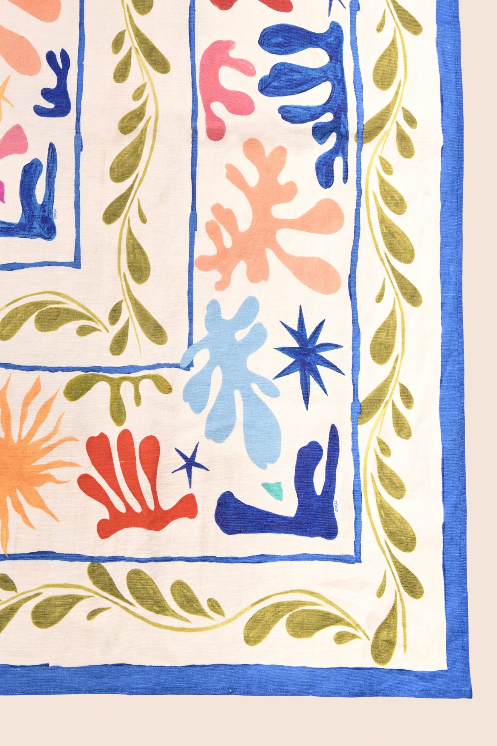 Product detailsDetailsThis Zebe tablecloth makes a striking addition to any kitchen or dining room. The scale shows off the hand-painted motif beautifully and the bright palette will lift any interior. We’ve used a beautiful linen and cotton-blend for a natural texture. We have coordinating napkins, too.Fit