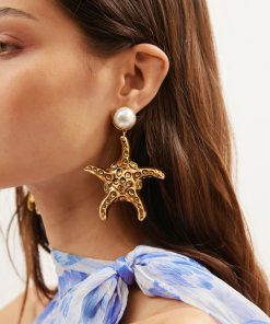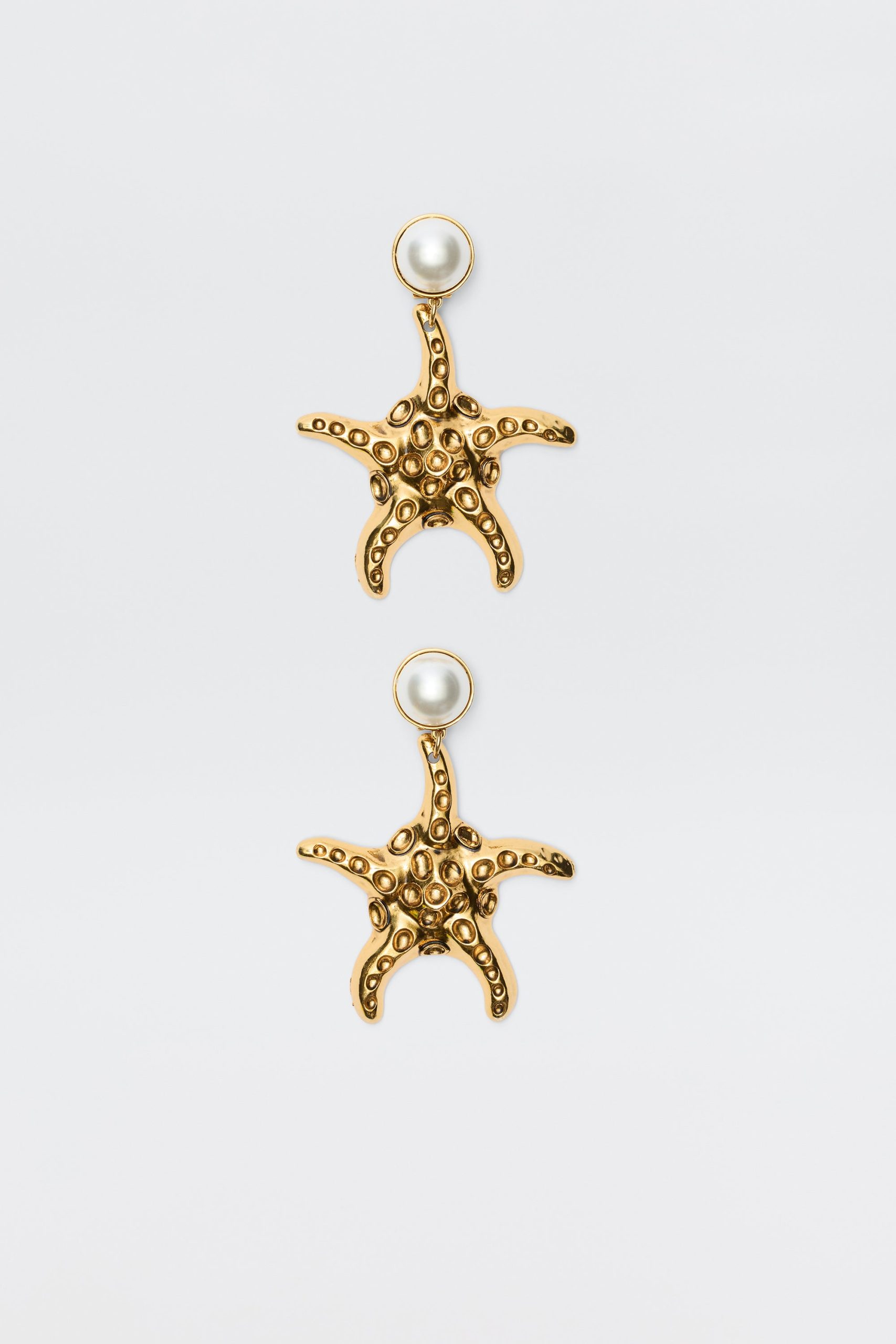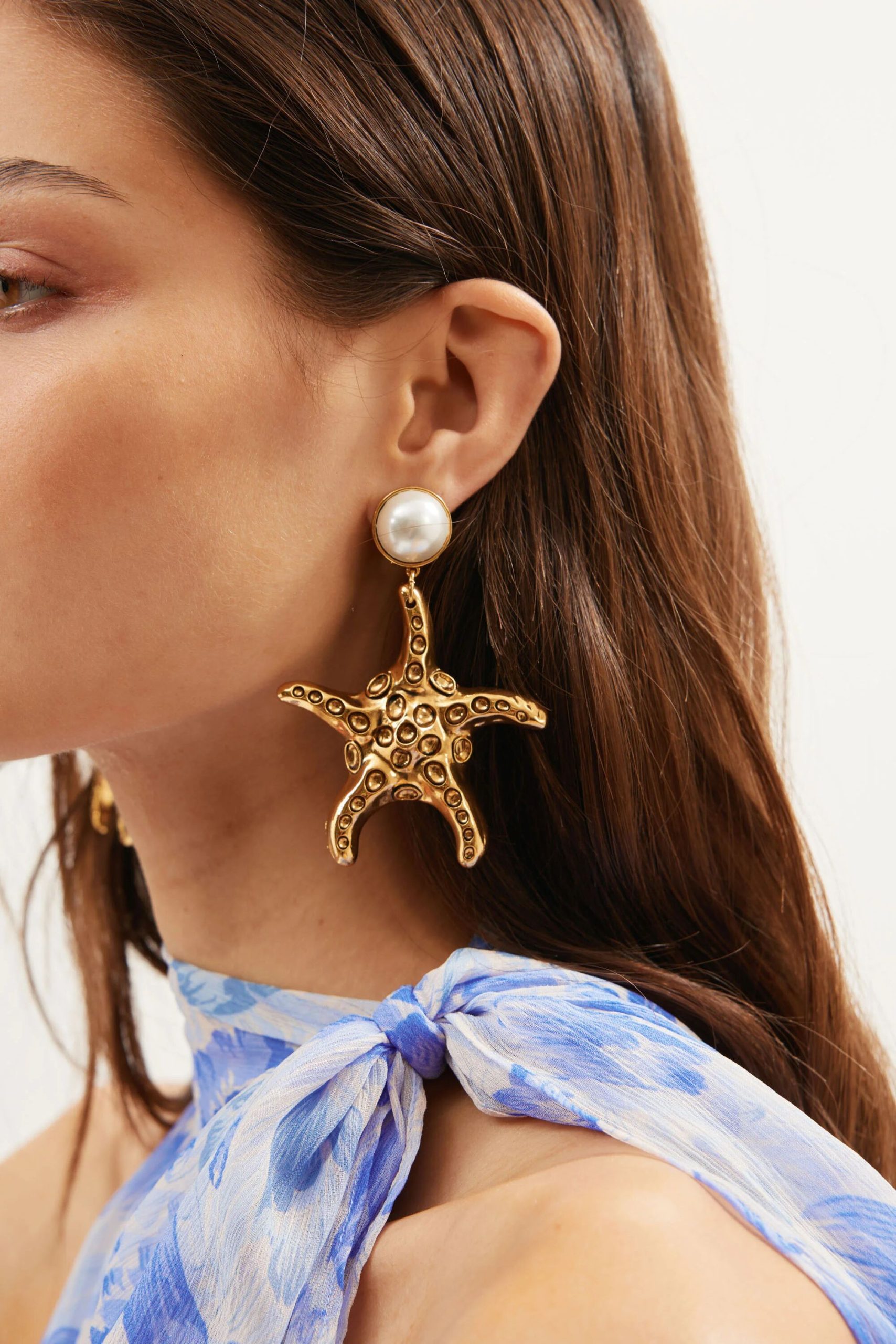 Product detailsDetailsThese statement Zeina earrings are inspired by our love of shells, and a pair we found in an Italian flea market. They’re made from 18-karat gold-plated metal with resin pearl studs and clip-on fastenings that work even without piercings.Fit